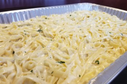 Choice of Creamy White sauce, pesto, Homemade Meatsauce or Marinara. Half Tray (Serves ...